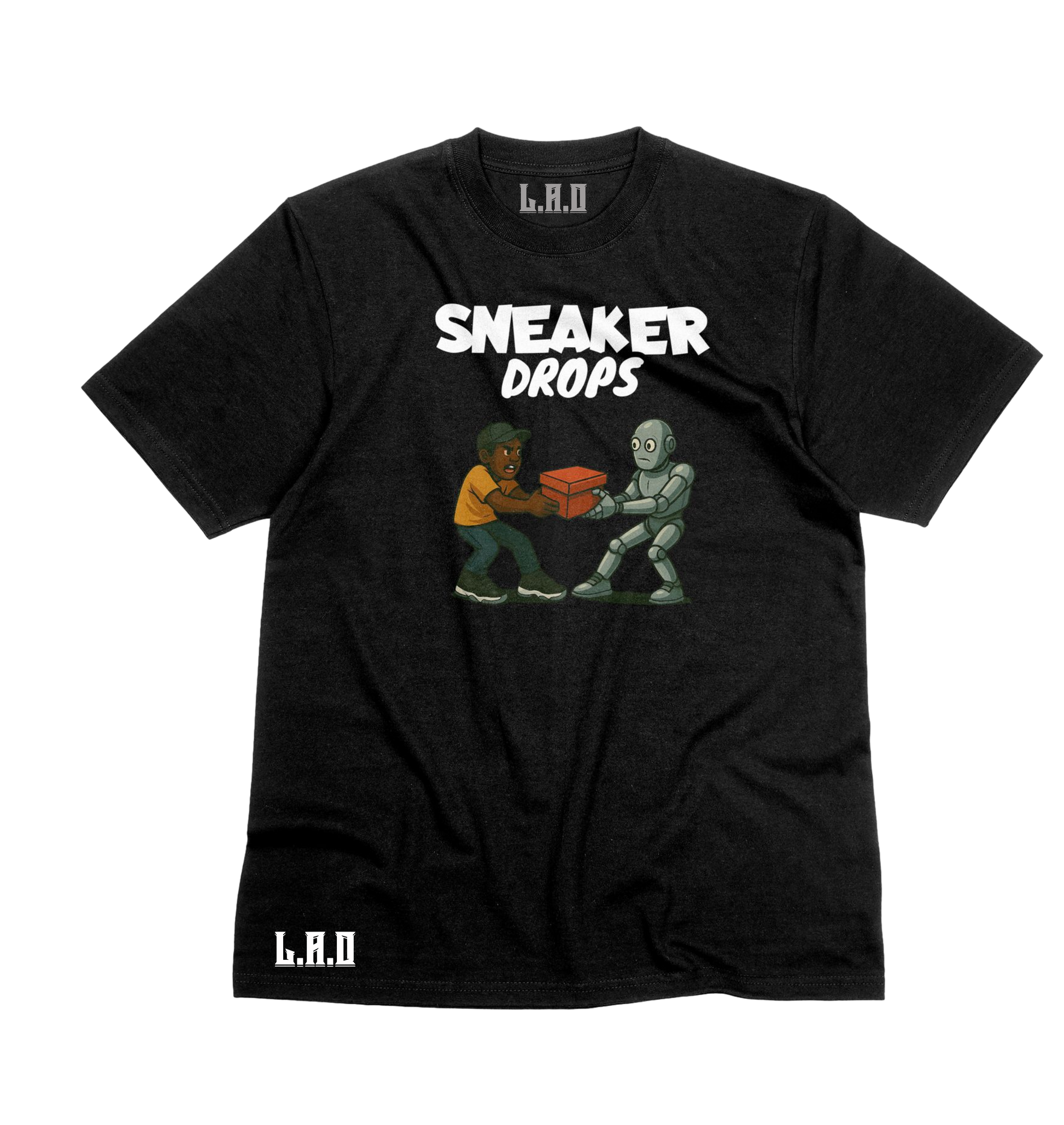 "Unleash your inner sneakerhead with our Sneaker Drop T-shirt! Representing the battle between Sneaker Heads and Bots, this must-have shirt is the perfect addition to any sneaker culture enthusiast's wardrobe. Pair it with your favorite kicks and show off your passion for all things sneakers!"